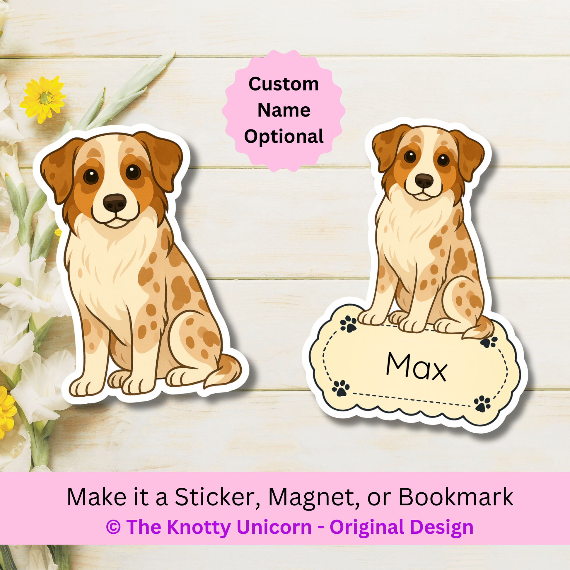 Aimant personnalisé Berger Australien – Rouge Merle | Personnalisable avec le nom de l'animal