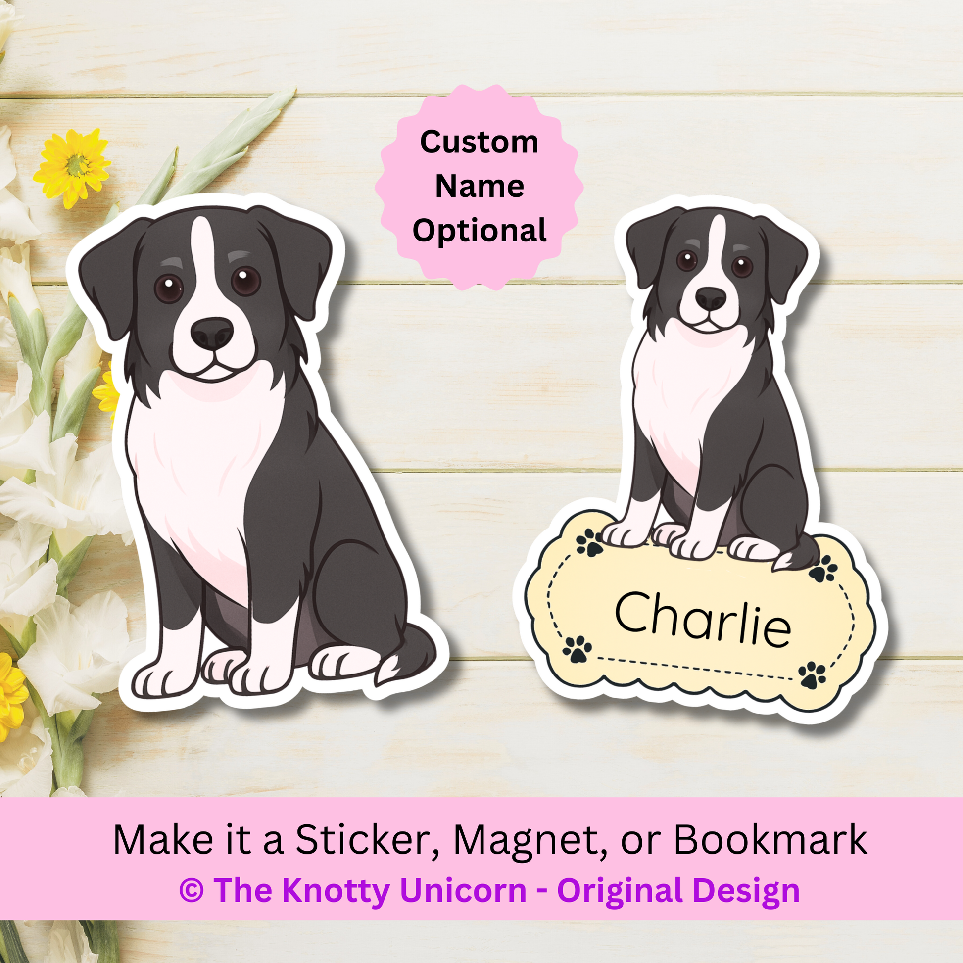 Aimant personnalisé Berger Australien - Noir et blanc | Personnalisable avec le nom de l'animal