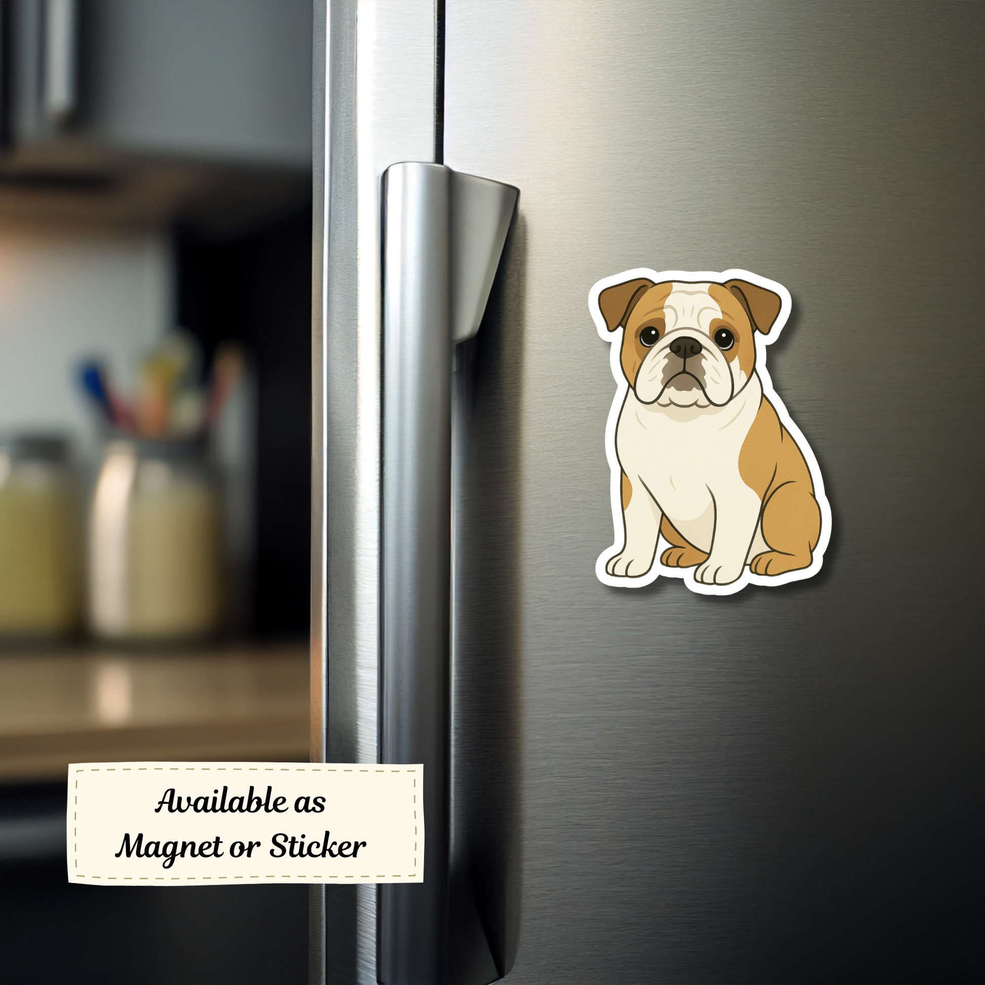 Aimant bouledogue anglais personnalisé – Fauve et blanc | Personnalisable avec le nom de l'animal