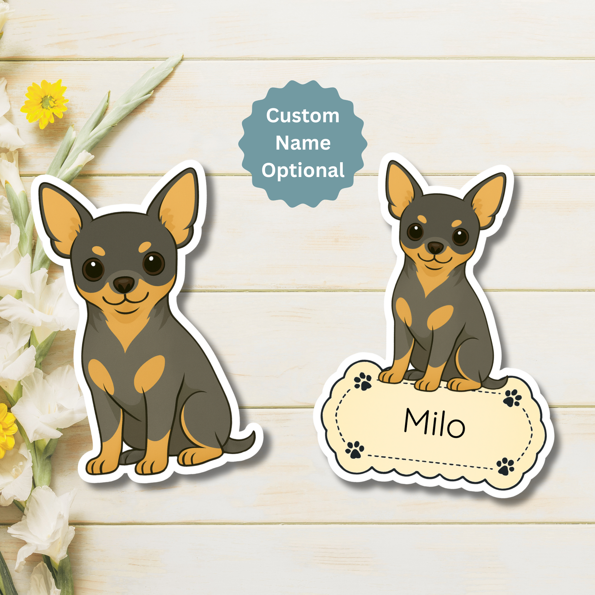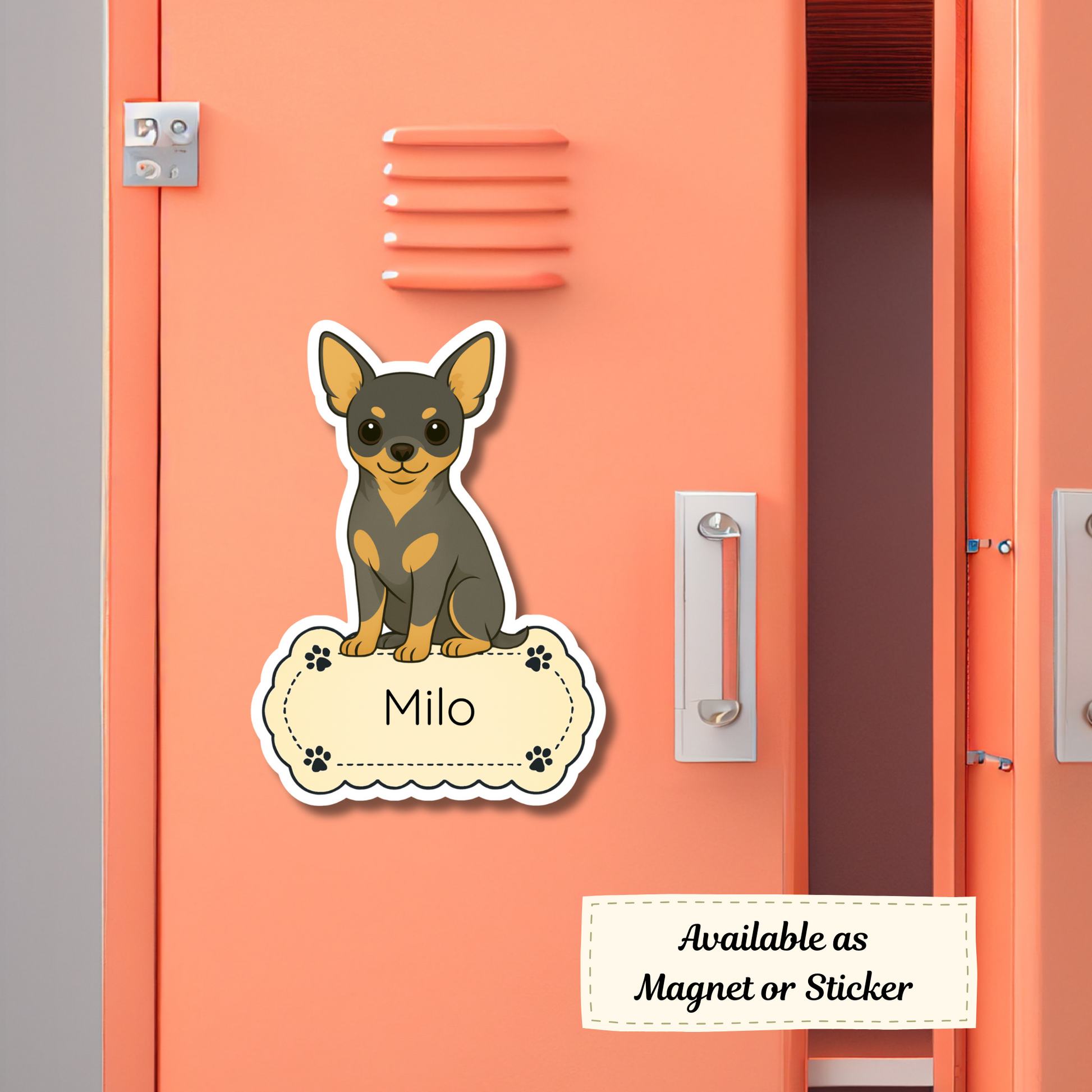 Aimant Chihuahua personnalisé – Poil court noir et feu | Personnalisable avec le nom de l'animal