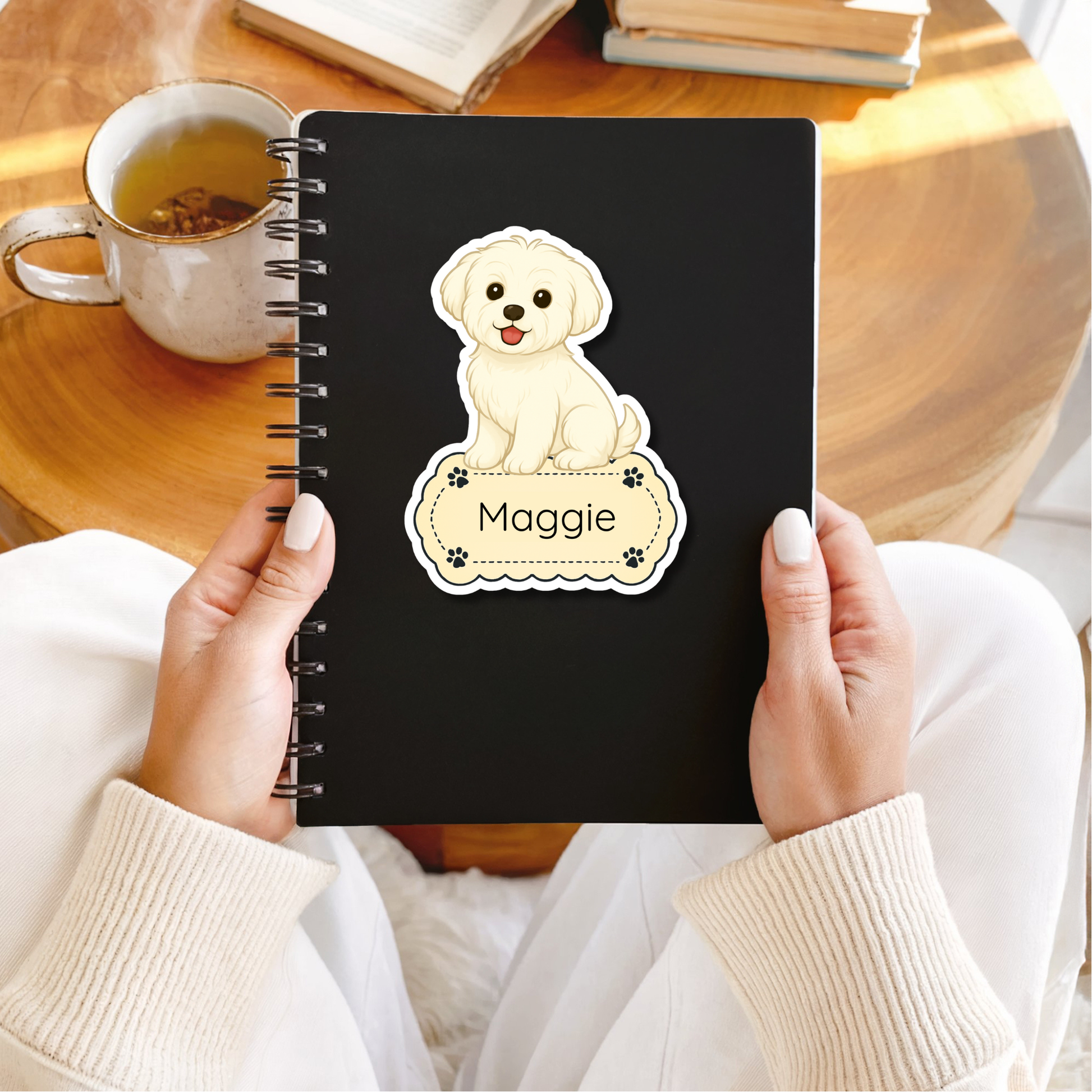 Autocollant personnalisé pour chien maltais - Blanc | Personnalisable avec nom