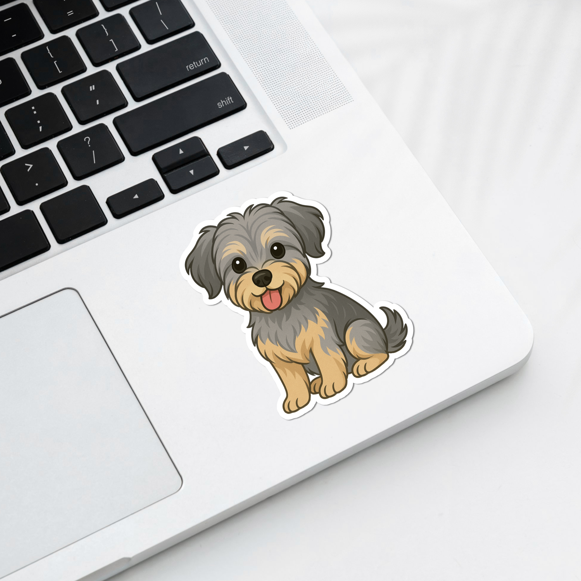 Autocollant personnalisé pour chien Morkie - Argent et beige | Personnalisable avec votre nom