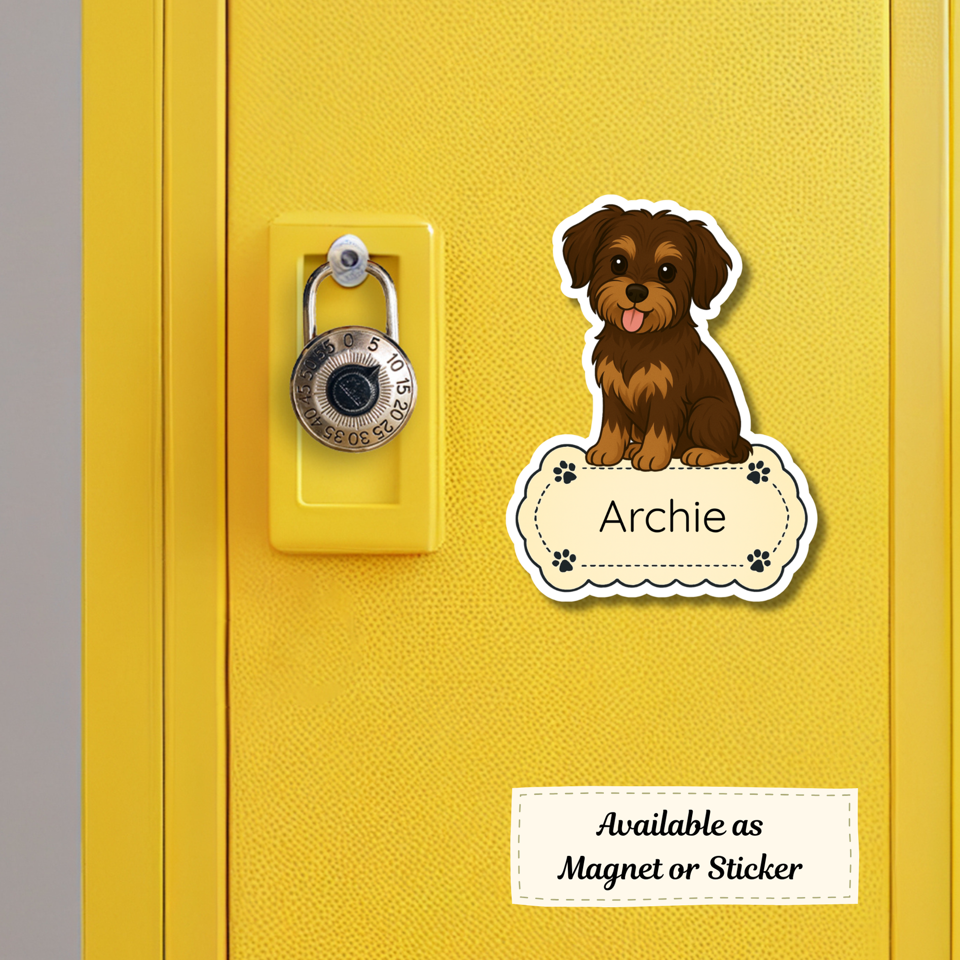 Autocollant personnalisé pour chien Morkie - Chocolat et beige | Personnalisable avec votre nom