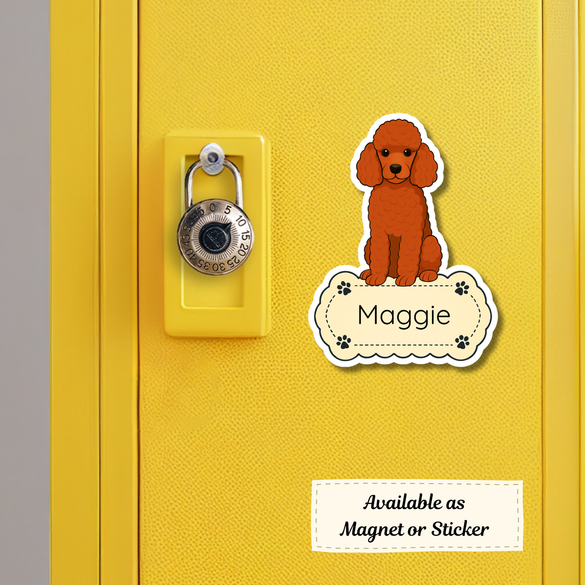 Autocollant personnalisé pour caniche - Rouge | Personnalisable avec nom