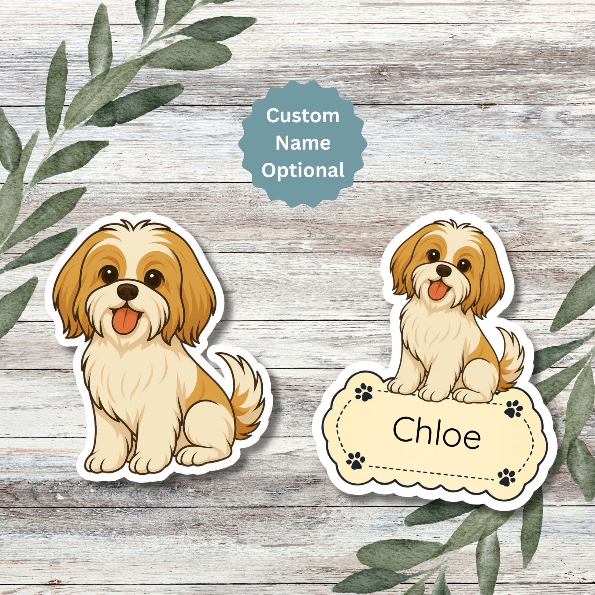 Autocollant personnalisé Shih Tzu - Or et blanc | Personnalisable avec votre nom