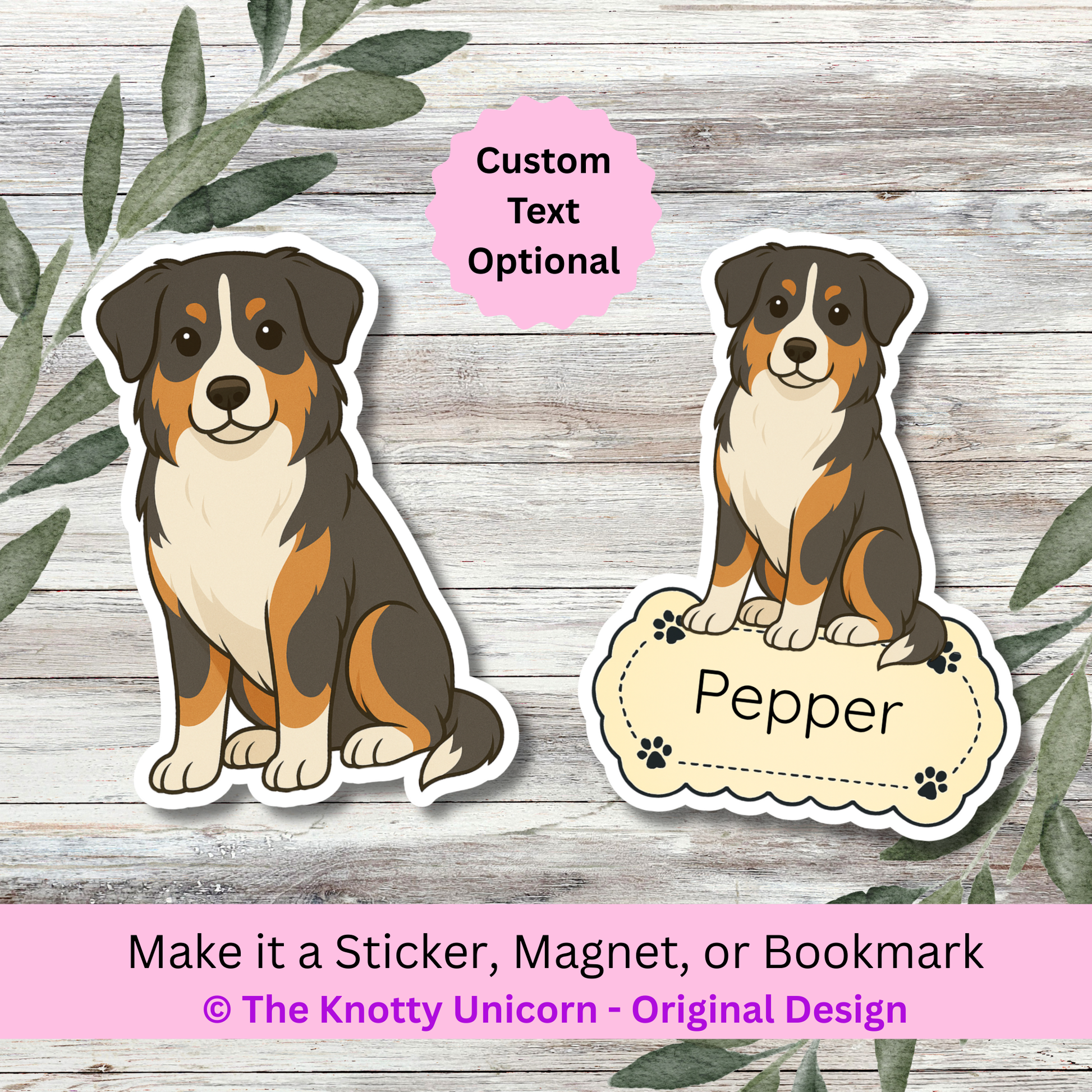 Personalized Australian Shepherd Dog Sticker - Tri Colored