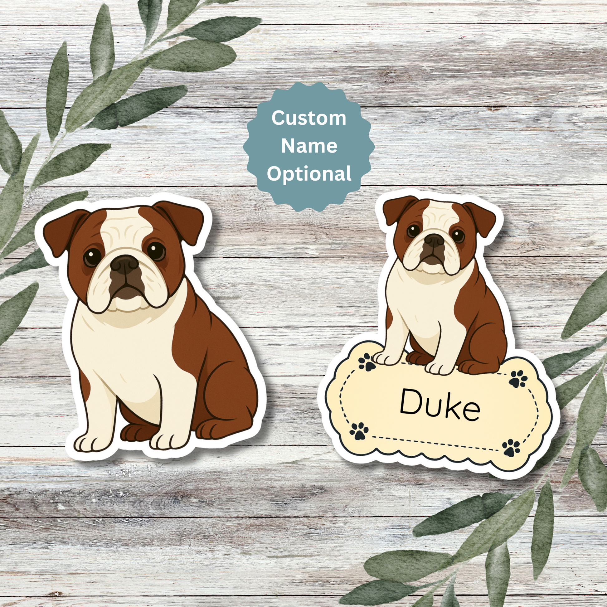 Custom English Bulldog Dog Sticker - Red and White | Personalized with Name
