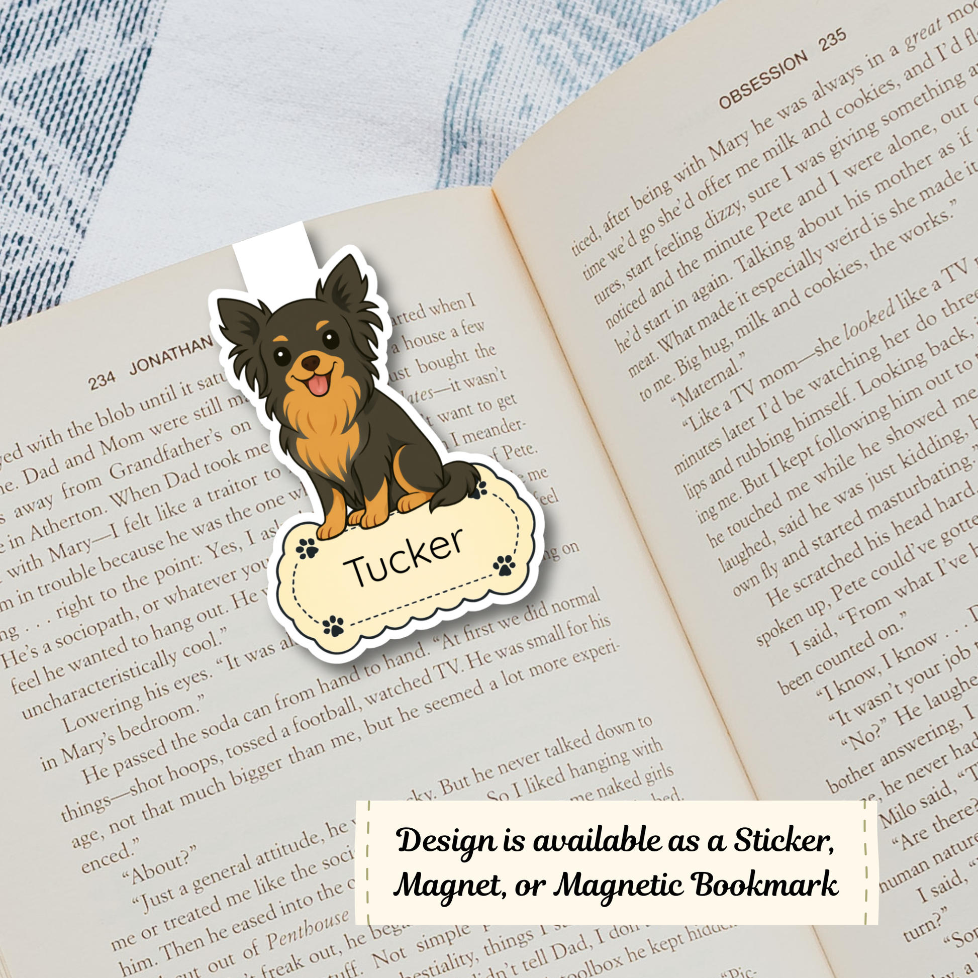 Custom Long Haired Chihuahua Dog Magnet / Bookmark - Black and Tan