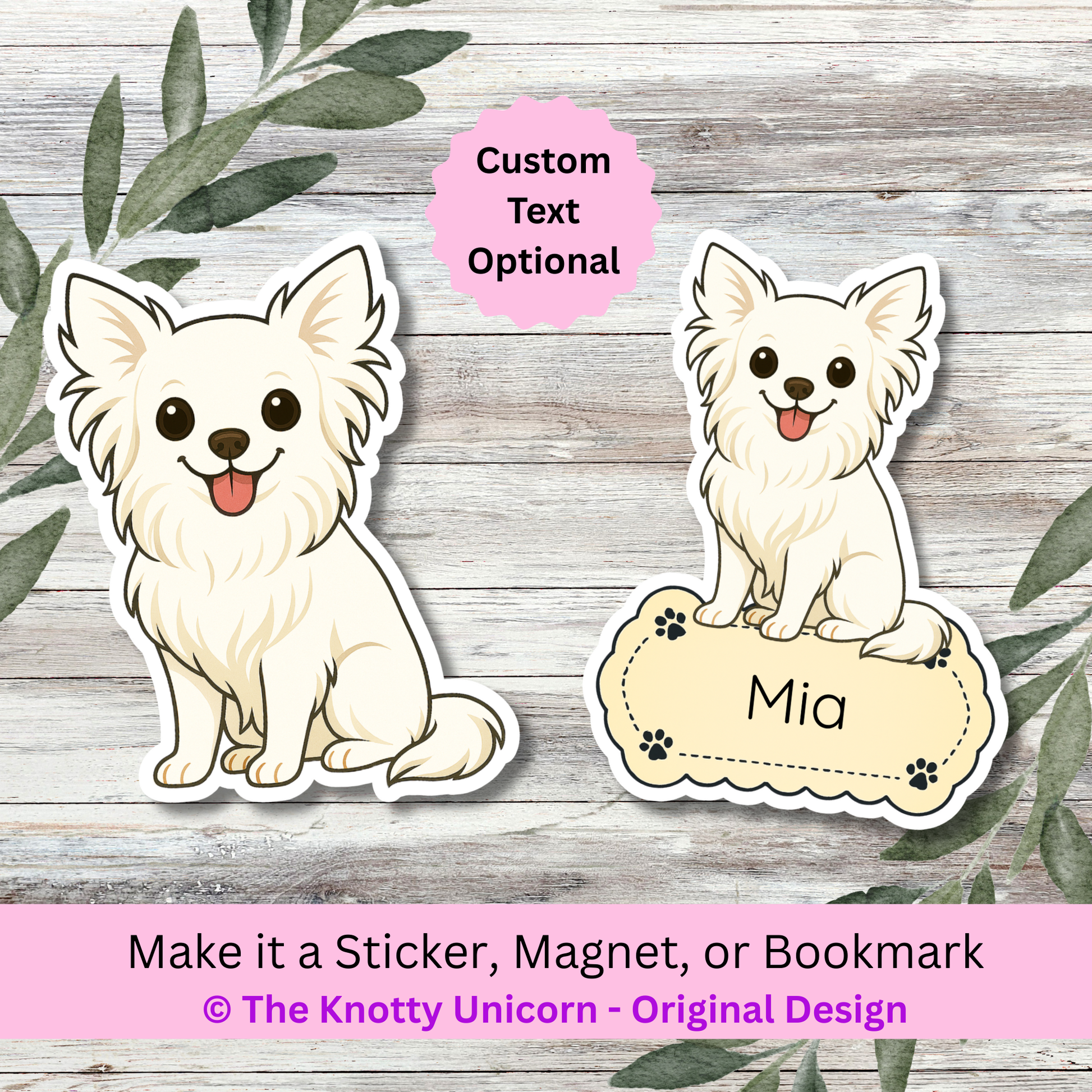 Personalized Long Haired Chihuahua Dog Sticker - White