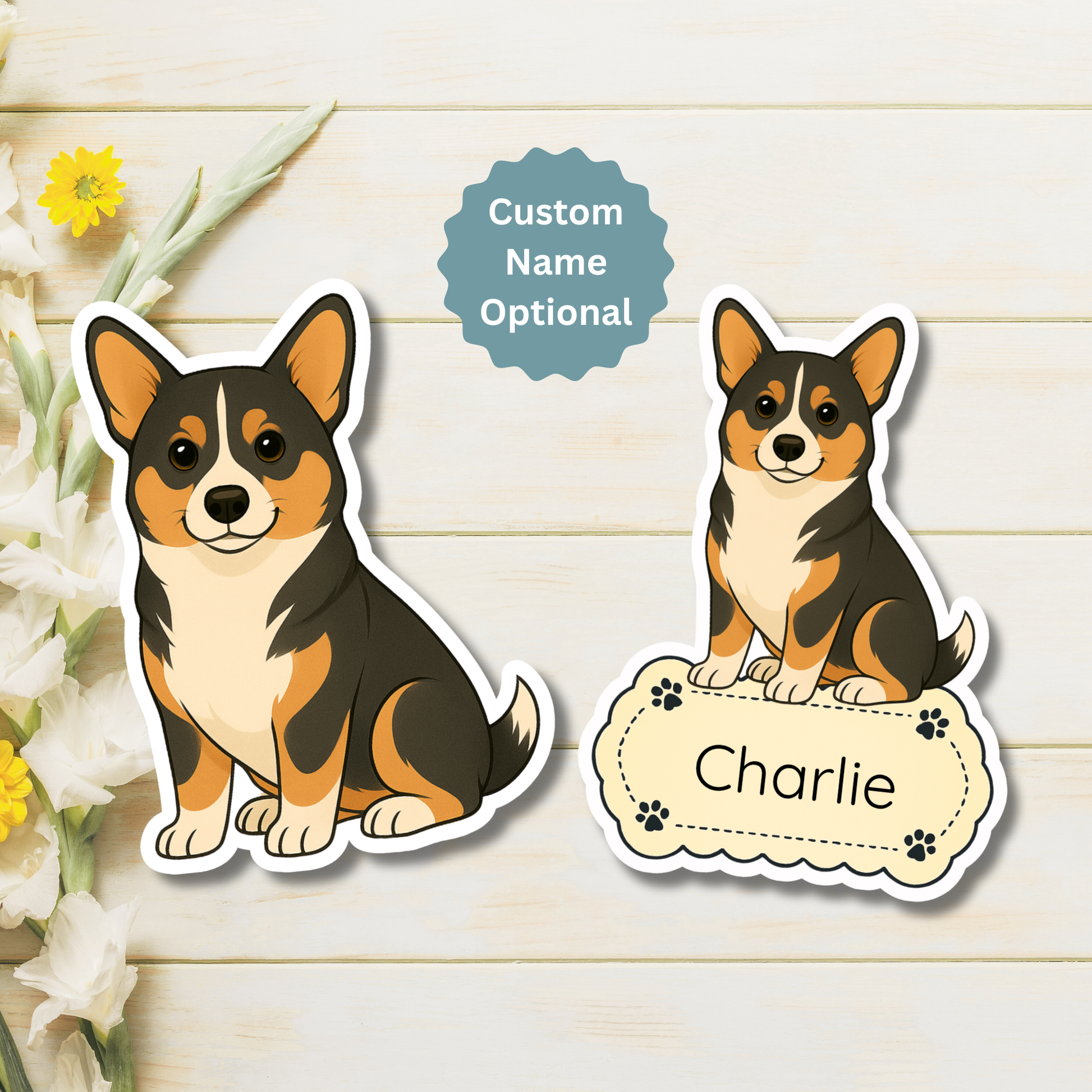 Custom Pembroke Corgi Dog Sticker - Tri-colored | Personalized with Pet Name
