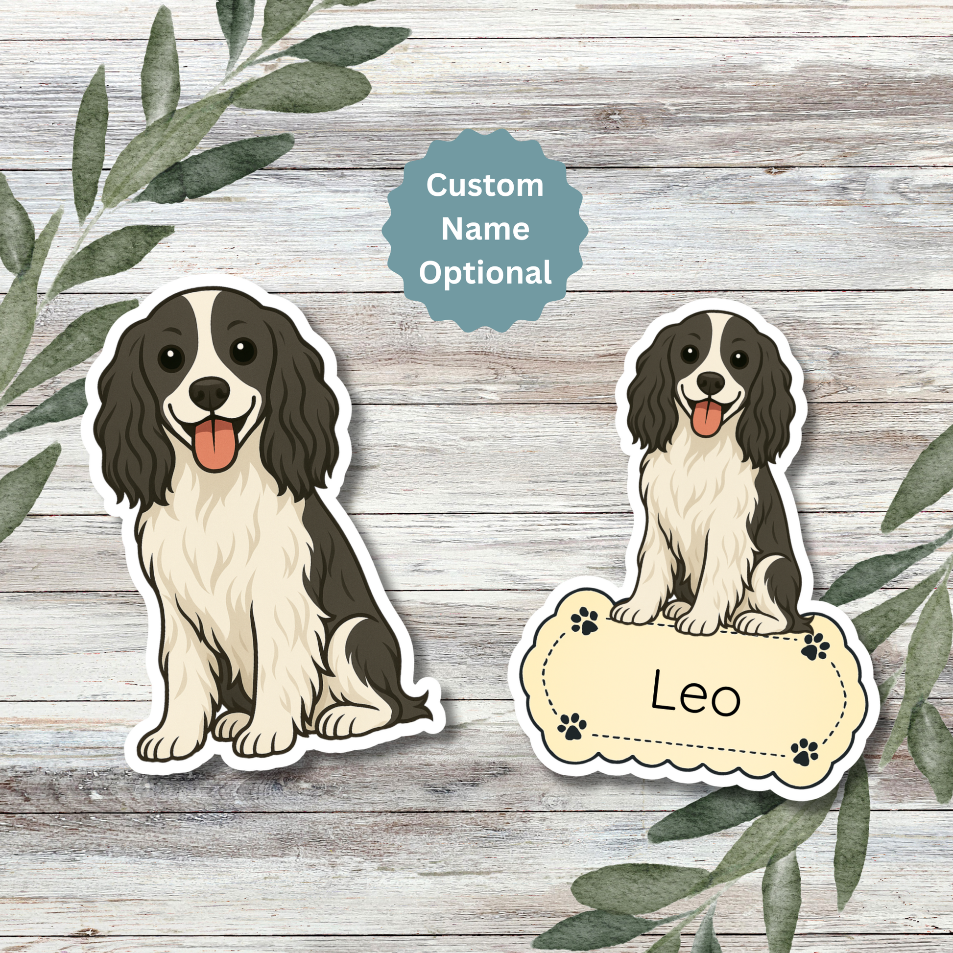 Custom English Springer Spaniel Dog Sticker - Black and White | Personalized with Name