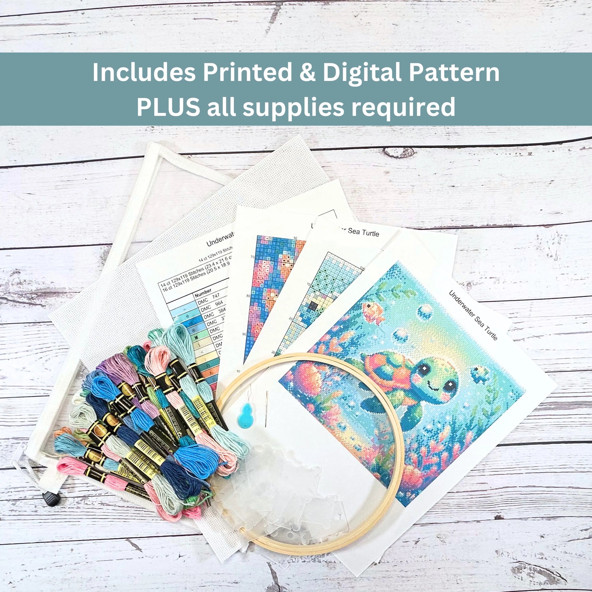 Sea Turtle Cross Stitch Kit – Full Coverage Ocean Needlework